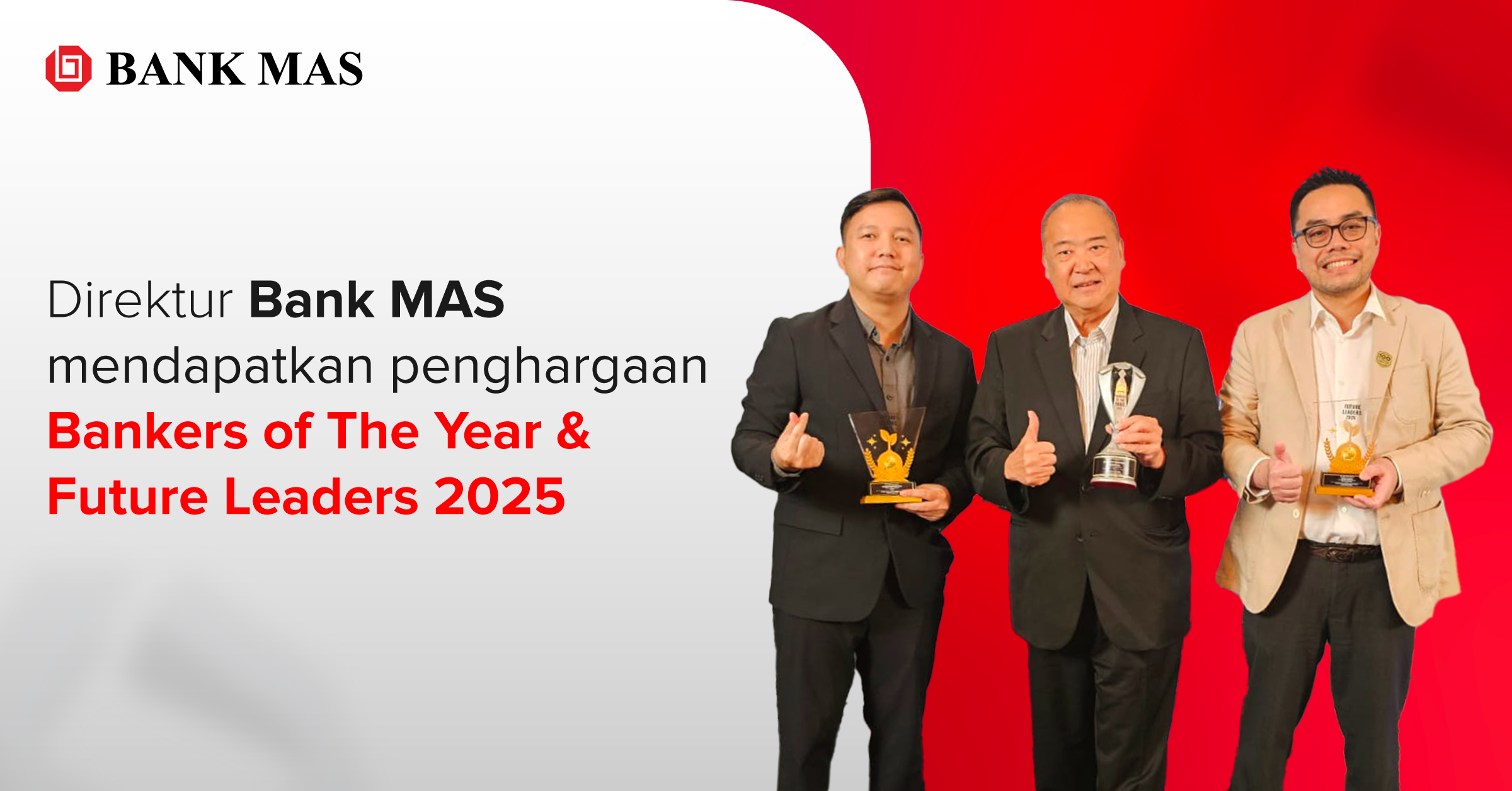 “Penghargaan ini merupakan amanah besar bagi kami. Transformasi yang sedang berjalan di Bank MAS tidak hanya tentang teknologi, tetapi tentang membangun organisasi yang lebih berintegritas, dan berorientasi pada nasabah. Kami akan terus mendorong inovasi dan memperkuat fondasi bisnis agar Bank MAS dapat memberikan layanan yang lebih baik, lebih cepat, dan lebih aman bagi seluruh nasabah” ujar Bapak Ho Danny Hartono.
