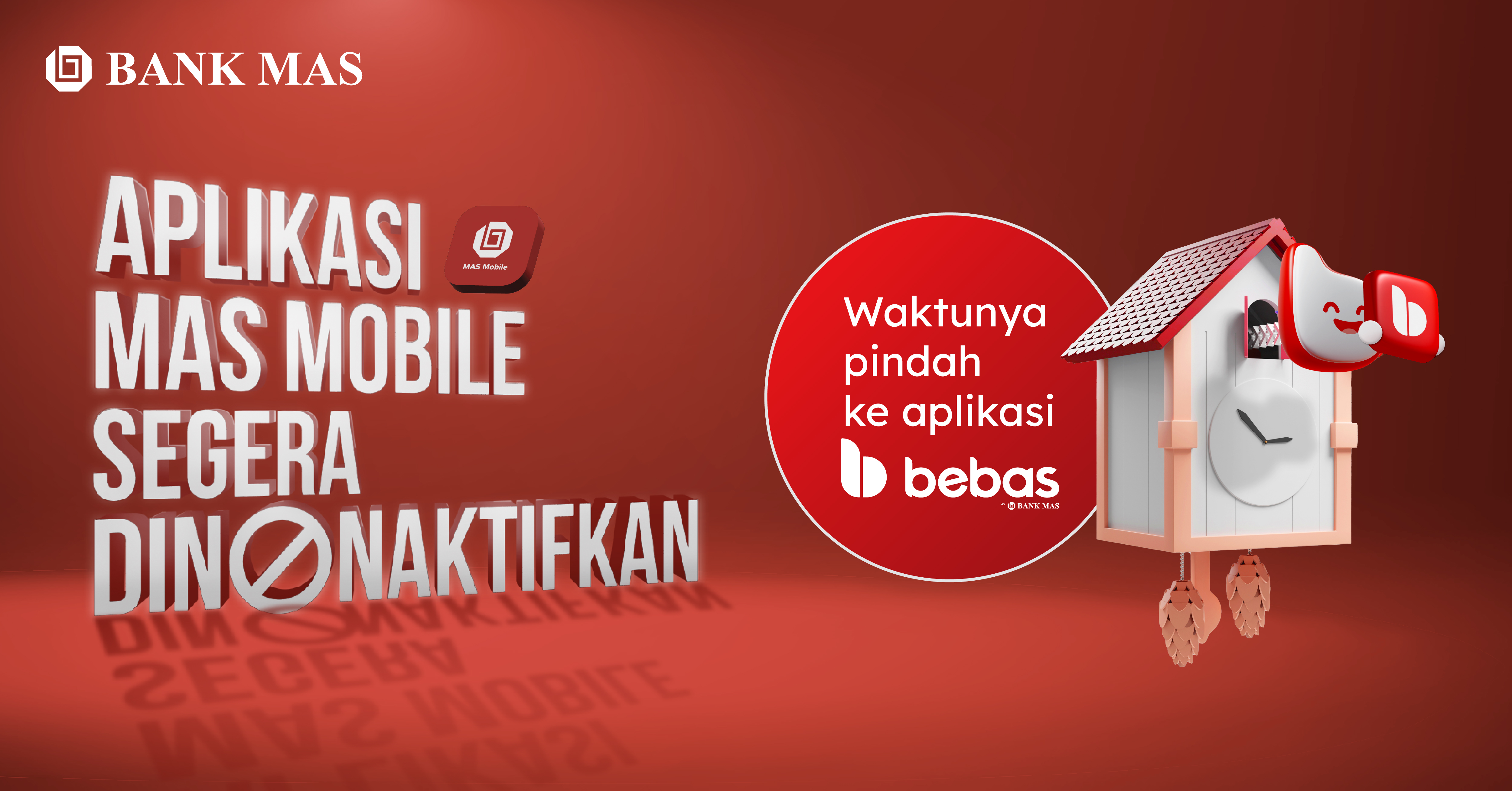Sebagai bagian dari peningkatan layanan digital Bank MAS, aplikasi mobile banking MAS Mobile akan segera dinonaktifkan dan agan digantikan oleh aplikasi Bebas by Bank MAS untuk pengalaman transaksi yang semakin praktis.
