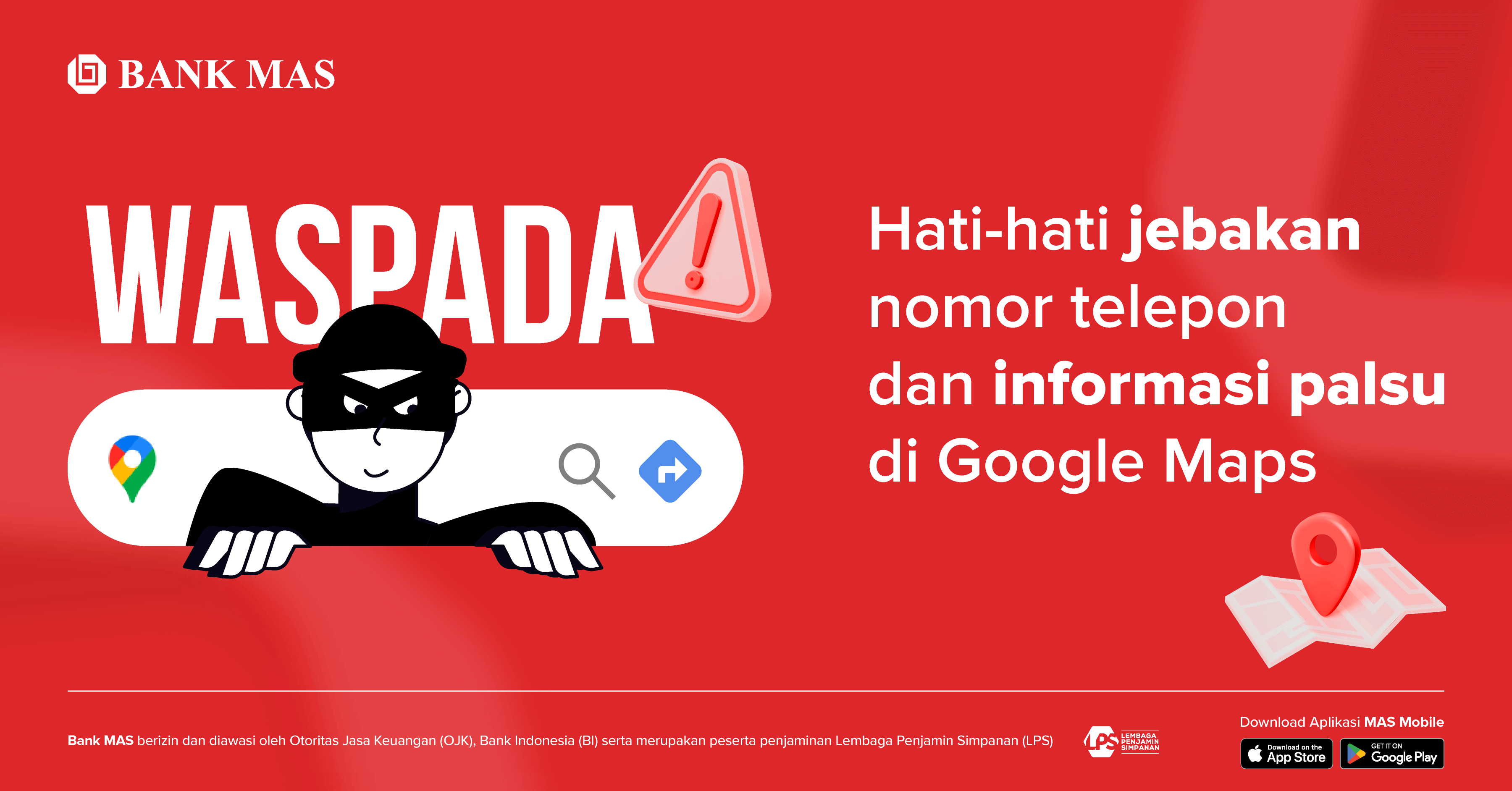 Oleh karena itu, Bank MAS terus berupaya untuk mengedukasi nasabah dan masyarakat secara umum untuk senantiasa berhati-hati dan teliti saat menghubungi saluran komunikasi resmi Bank MAS dalam menikmati berbagai layanan perbankan yang disediakan.
